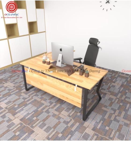 Bàn Chữ L: M Concept chân chữ M sắt hộp chữ nhật 25x50mm. Bàn văn phòng gỗ cao su ghép (TCAA) 2 mặt đẹp hoặc MDF chống ẩm (TCVN) dày 17mm sơn PU màu gỗ tự nhiên hoặc màu phù hợp với môi trường văn phòng, phòng làm việc gia đình. Đối với các văn phòng mở, văn phòng kết hợp với cây xanh thì việc sử dụng bàn gỗ kết hợp chân sắt trở nên hoàn hảo. Chất liệu gỗ tại OceanPac là gỗ ghép cao su hoặc là gỗ MDF chống ẩm dày 17mm đảm bảo tiêu chuẩn sản xuất tại nhà máy ( 2 mặt đẹp) được xử lý qua 4 công đoạn trước khi sơn PU hoàn thiện cho bề mặt sản phẩm rất đẹp mắt, chống nước tuyệt đối với khung chân sắt được sơn tĩnh điện bền đẹp cùng năm tháng.