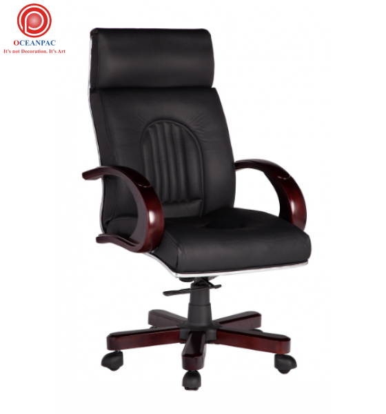 Chất liệu: lưng caonệm boc PU, tay gỗ cao cấp, mâm ngã 2 cần, chân xoay gỗ.