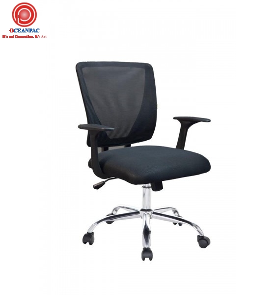Chất liệu: Lưng bọc lưới, ngồi bọc nệm, tay nhựa chữ T, mâm ngã 1 cần, chân xoay inox 201.