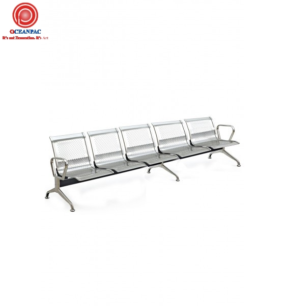 Chất liệu: Băng chờ dãy 5 chổ khung inox 201, thanh ngang bằng sắt sơn tỉnh điện, 3 chân.