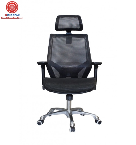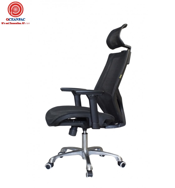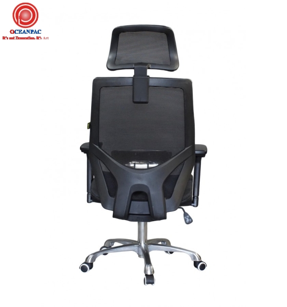 Chất liệu: khung nhựa bọc lưới, có gối tựa đầu, ngồi lưới thông thoáng, tay nhựa chữ T điều chỉnh, chân xoay inox 201, mâm ngã 2 cần.