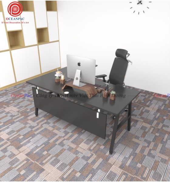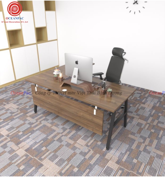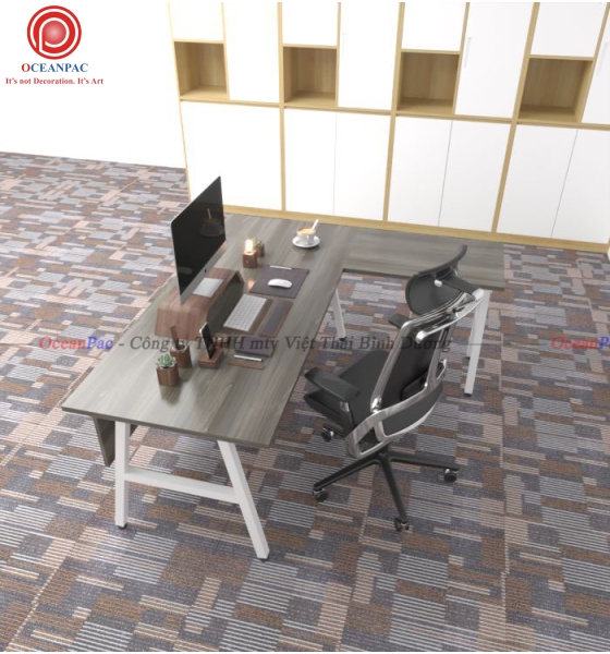 Bàn Quản Lý Chữ L: A Concept chân chữ A sắt hộp chữ nhật 25x50mm. Bàn văn phòng gỗ cao su ghép (TCAA) 2 mặt đẹp hoặc MDF chống ẩm (TCVN) dày 17mm sơn PU màu gỗ tự nhiên hoặc màu phù hợp với môi trường văn phòng, phòng làm việc gia đình. Đối với các văn phòng mở, văn phòng kết hợp với cây xanh thì việc sử dụng bàn gỗ kết hợp chân sắt trở nên hoàn hảo. Chất liệu gỗ tại OceanPac là gỗ ghép cao su hoặc là gỗ MDF chống ẩm dày 17mm đảm bảo tiêu chuẩn sản xuất tại nhà máy ( 2 mặt đẹp) được xử lý qua 4 công đoạn trước khi sơn PU hoàn thiện cho bề mặt sản phẩm rất đẹp mắt, chống nước tuyệt đối với khung chân sắt được sơn tĩnh điện bền đẹp cùng năm tháng.